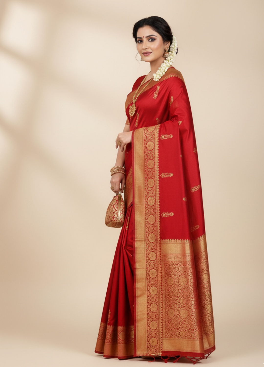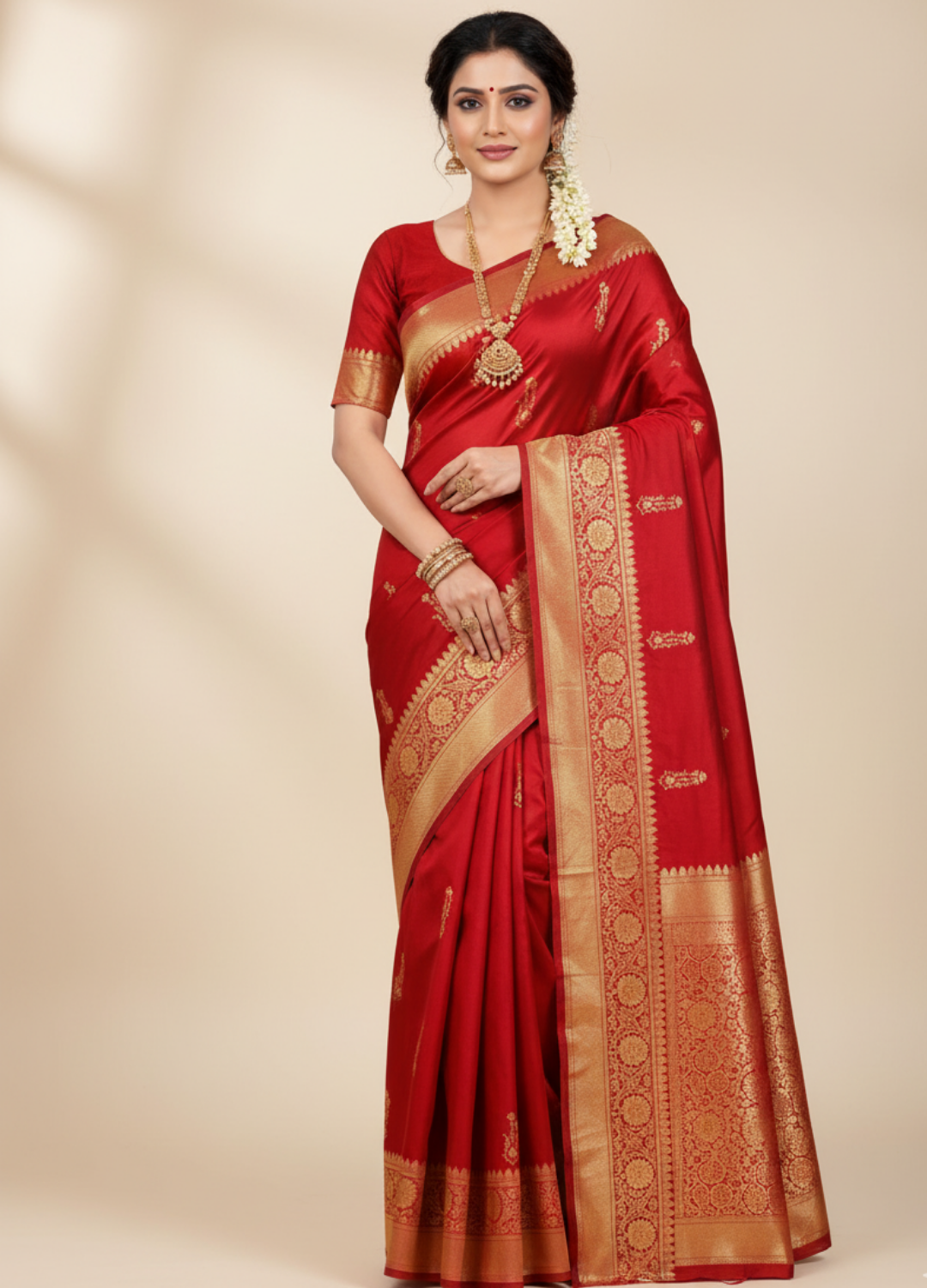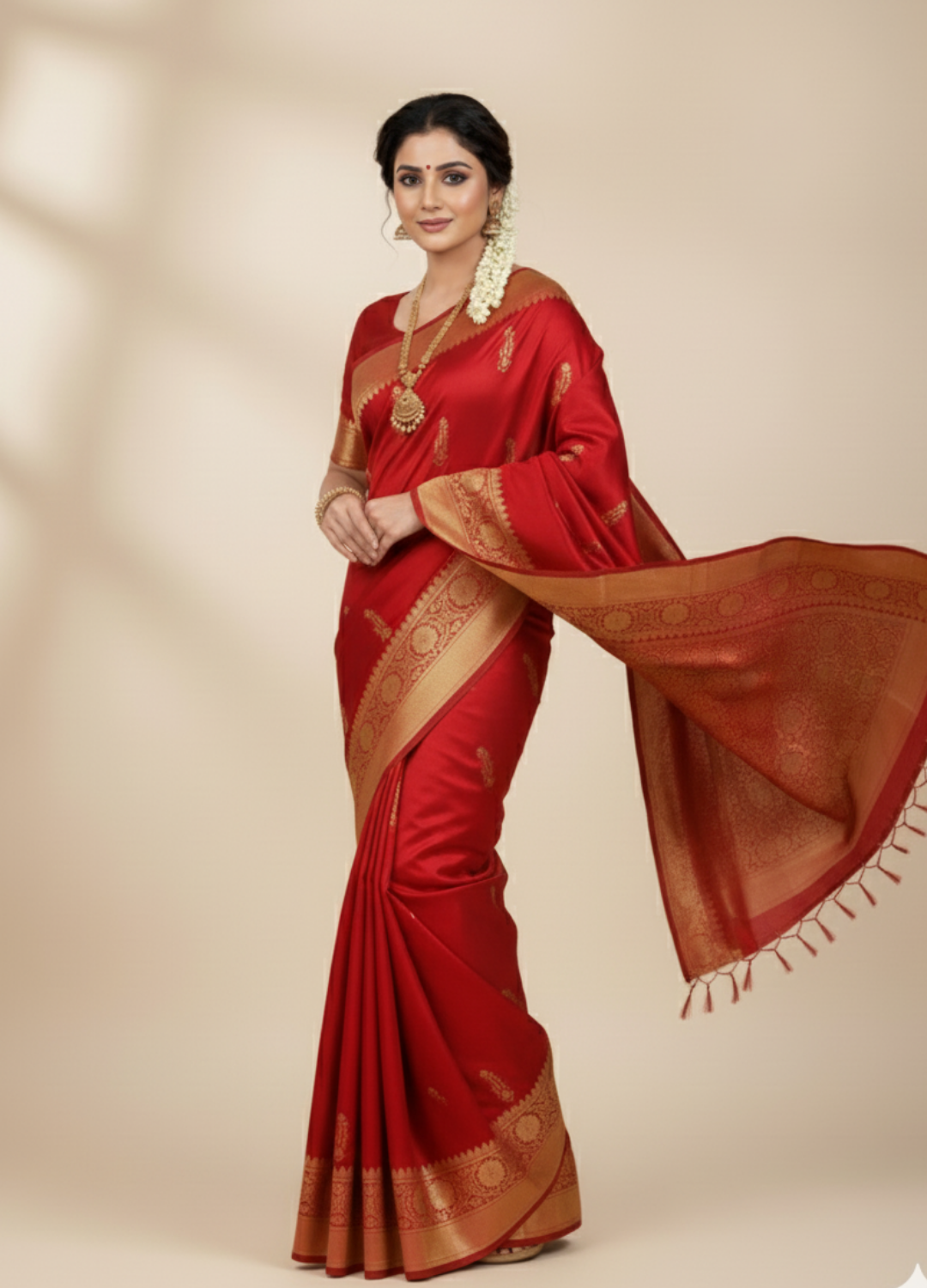 Craftsmanship: Handwoven using the centuries-old supplementary weft technique, making each saree unique.