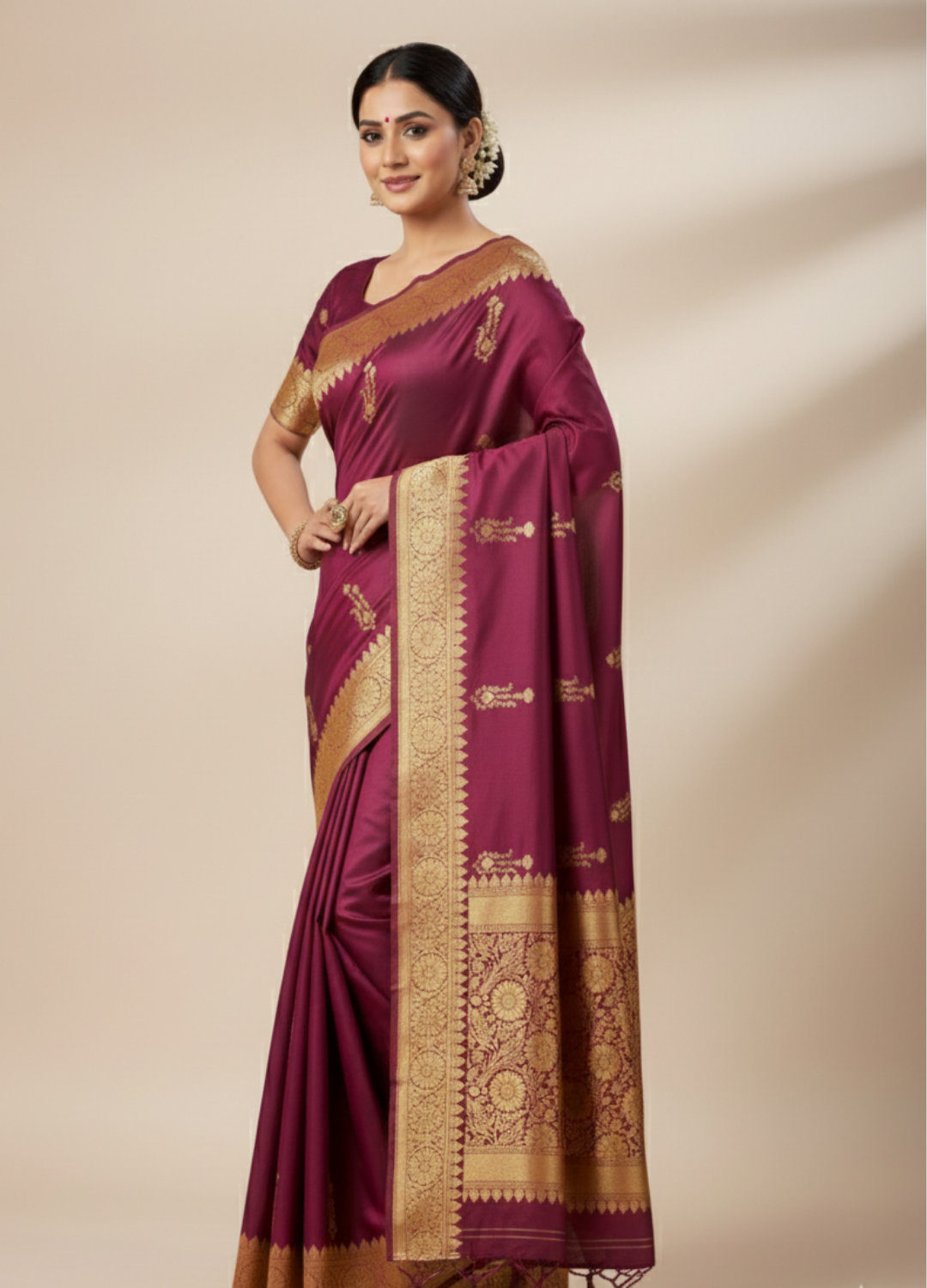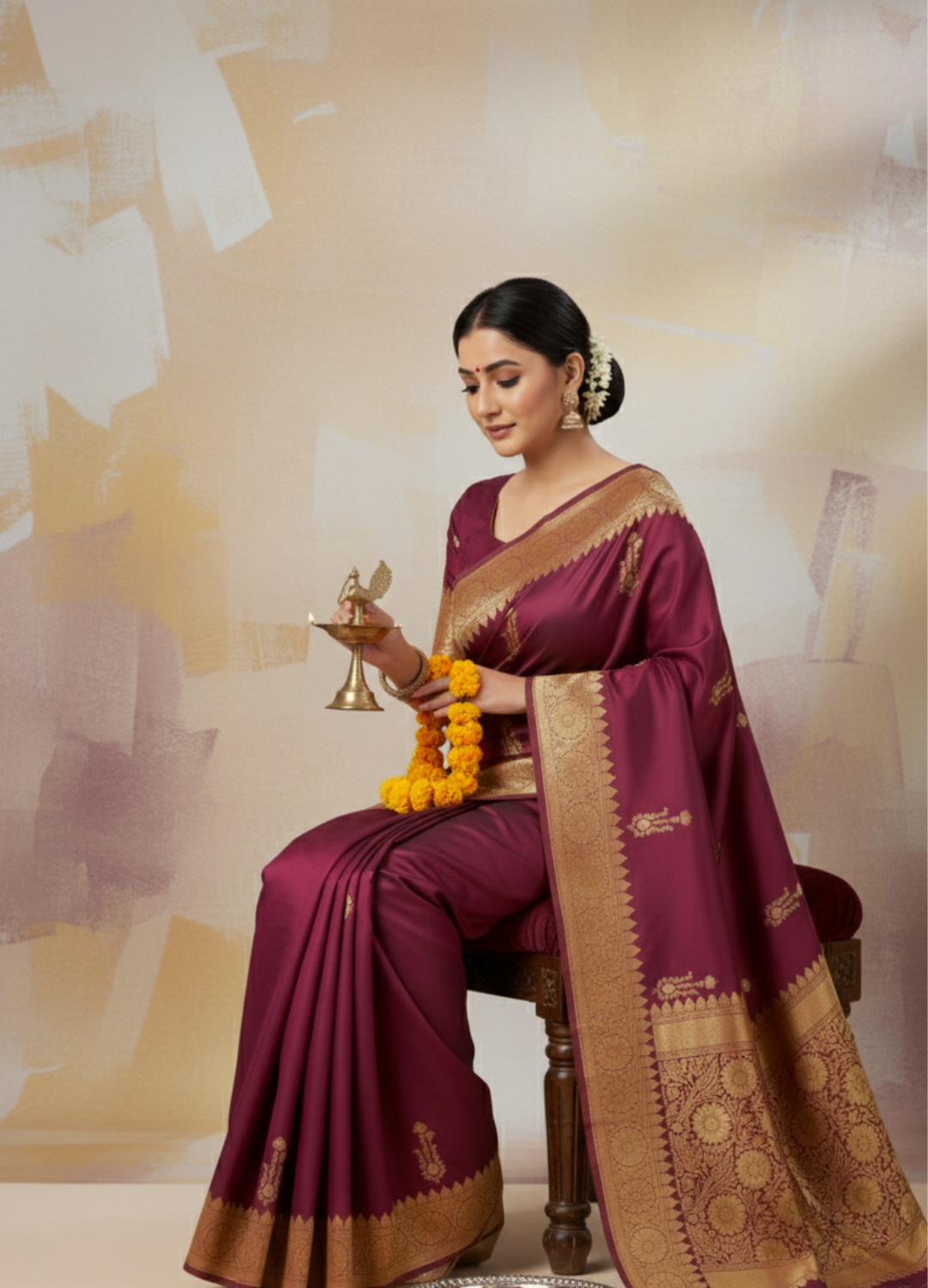 Craftsmanship: Handwoven using the centuries-old supplementary weft technique, making each saree unique.