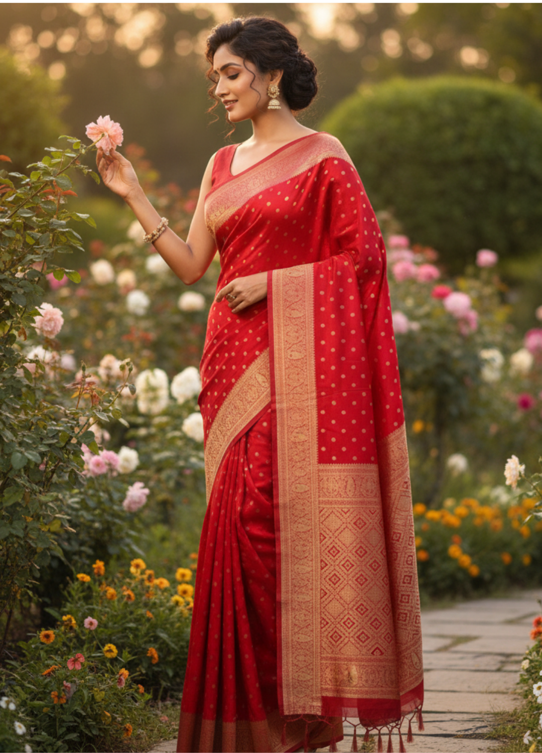 Craftsmanship: Handwoven using the centuries-old supplementary weft technique, making each saree unique.